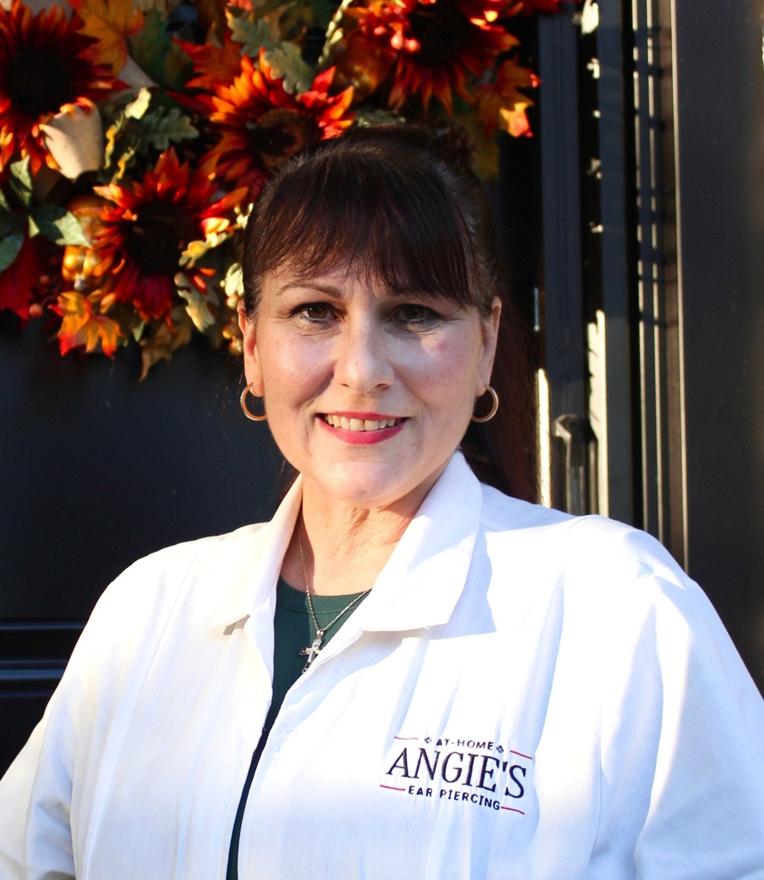 I'm Angie! Your local ear piercing expert with 35+ years of experience piercing ears. I offer at-home ear piercing in south-western Ontario for all ages 3 months and up