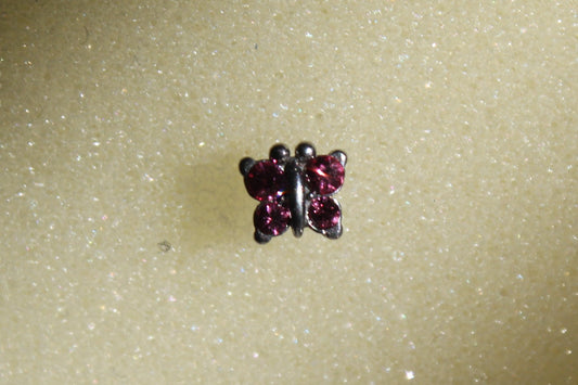 Pink Glitter Butterfly Stainless Steel Earring Set