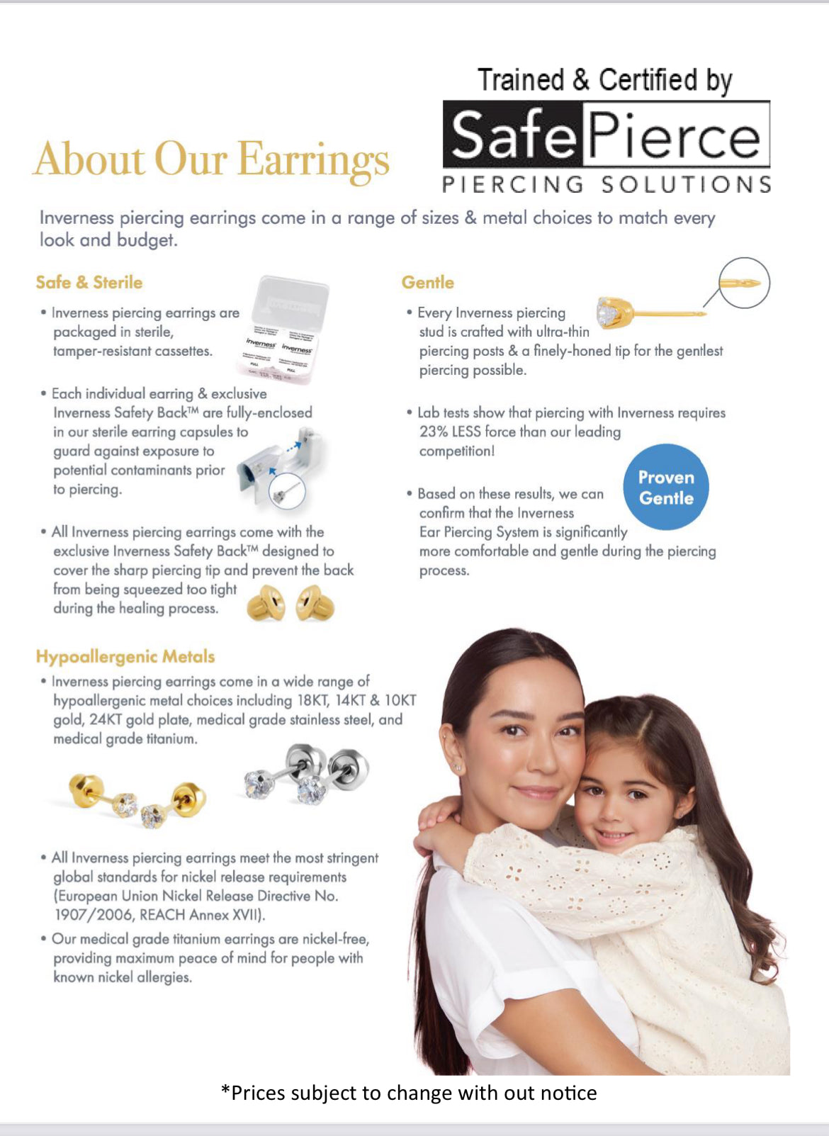 Each individual earring & exclusive Inverness Safety Back™ are fully-enclosed in our sterile earring capsules to guard against exposure to potential contaminants prior to piercing.