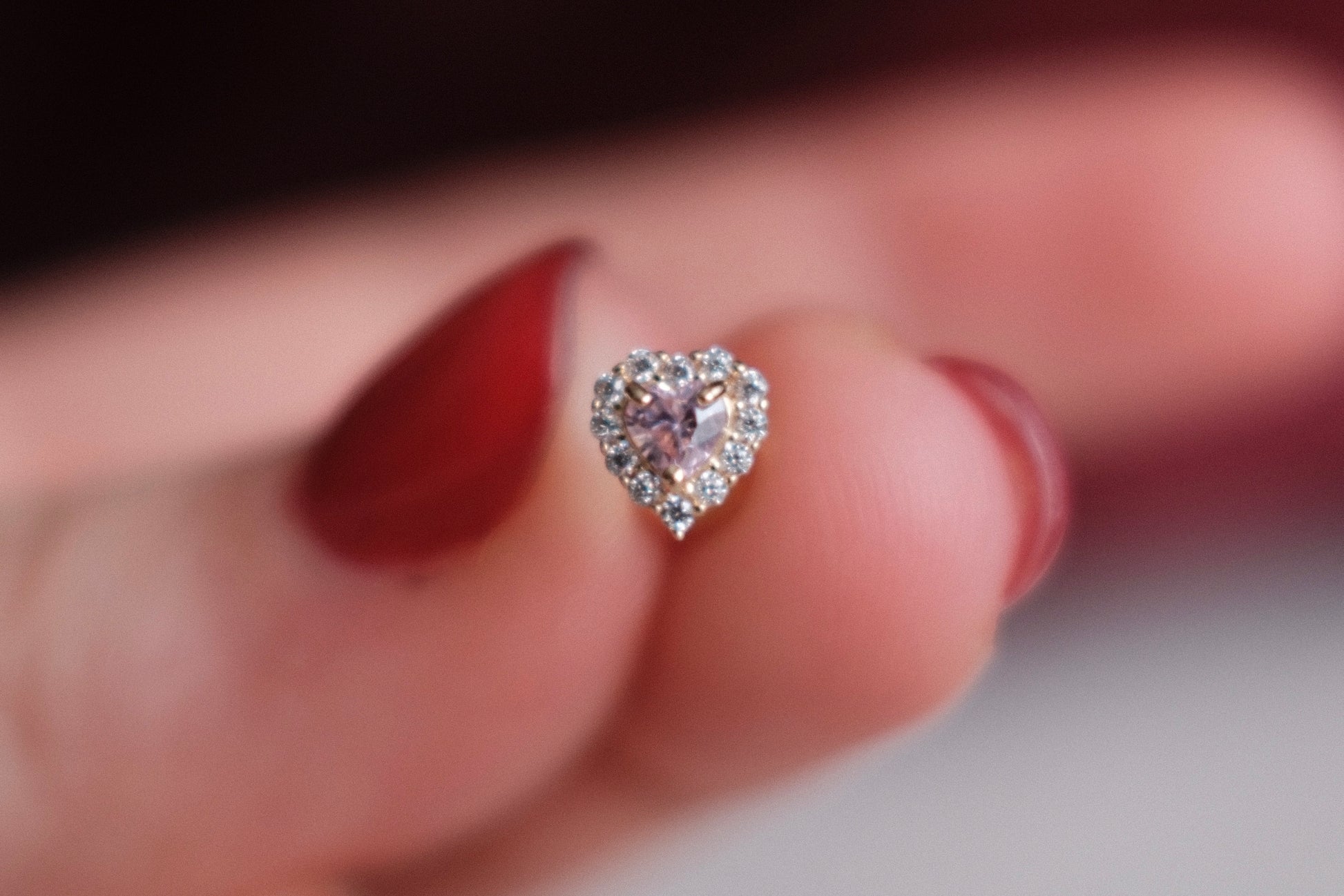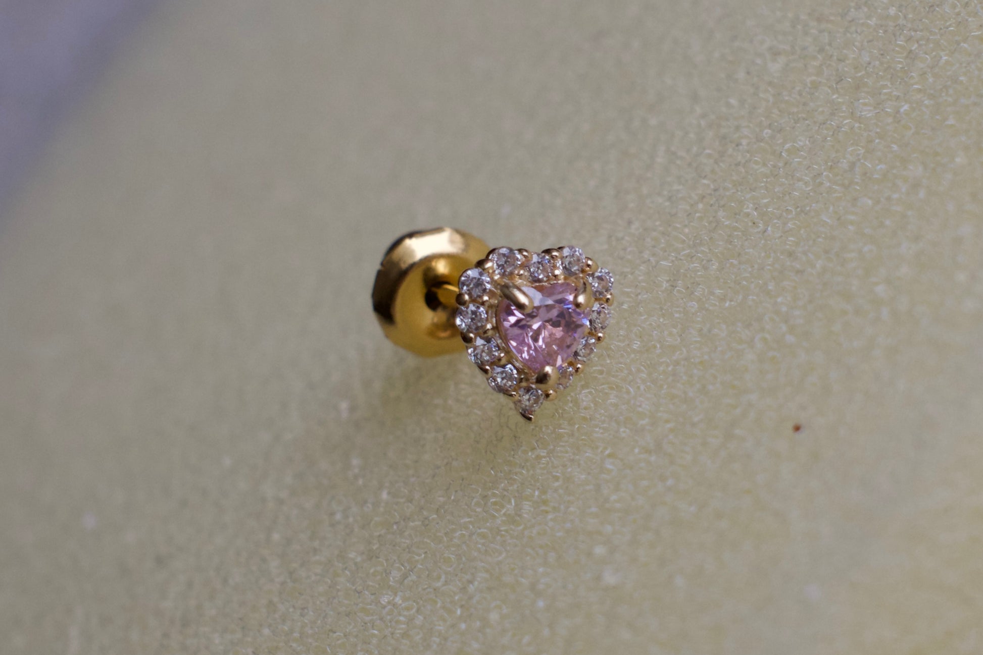 Set of 14K Pink Cubic Zirconia Heart w/ Halo earrings by Inverness. Hypoallergenic, 14K yellow gold.