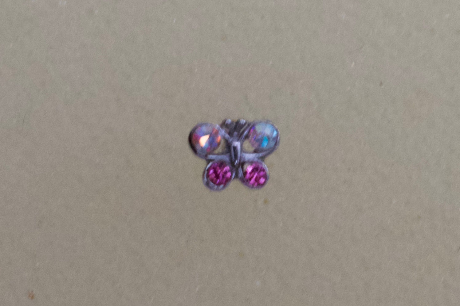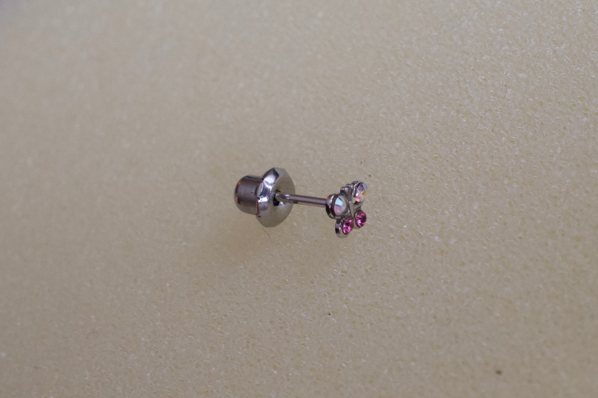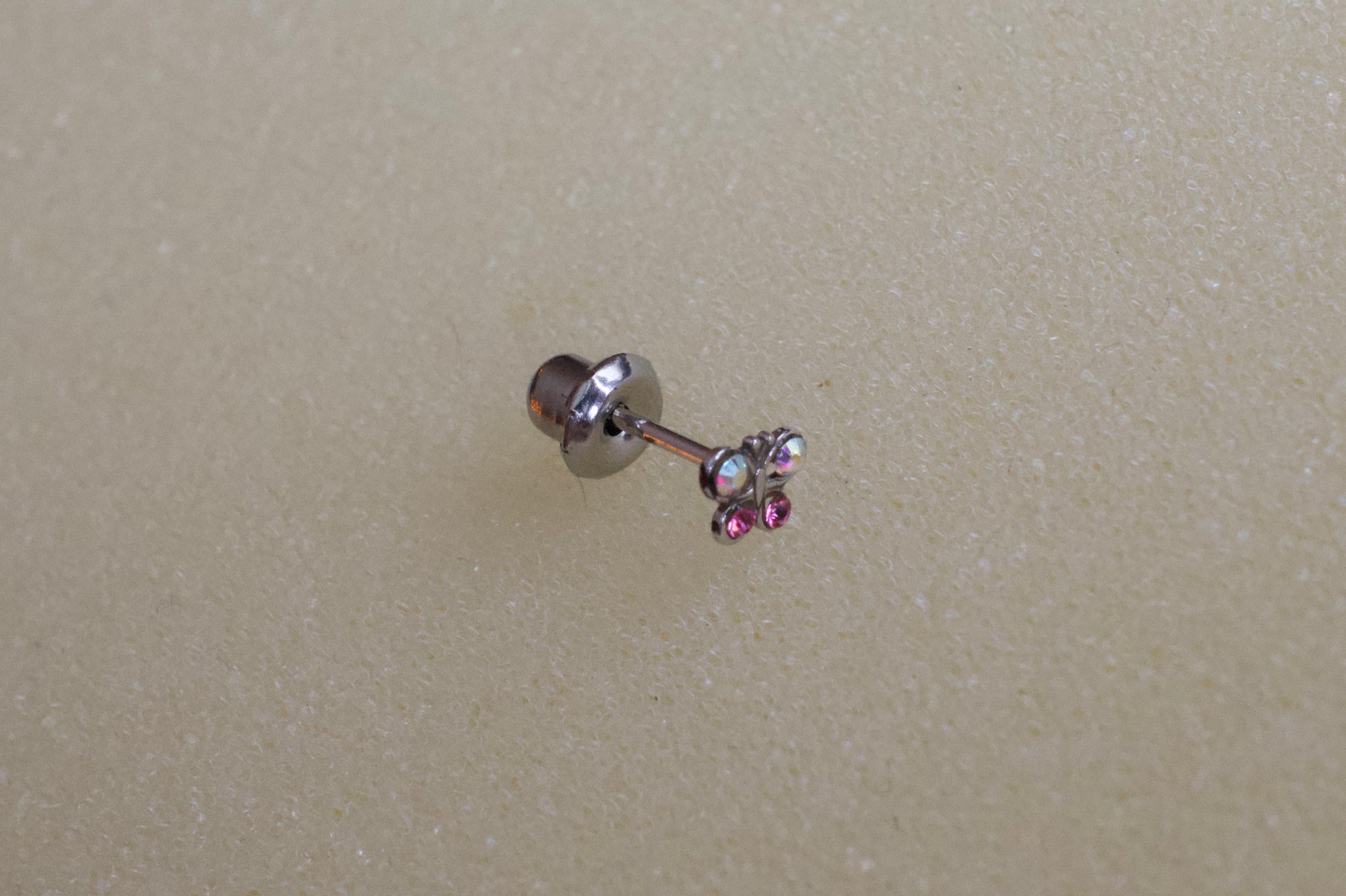 Set of 14K White Gold butterfly earrings with pink and clear crystals by Inverness. Hypoallergenic, 14 karate white gold.