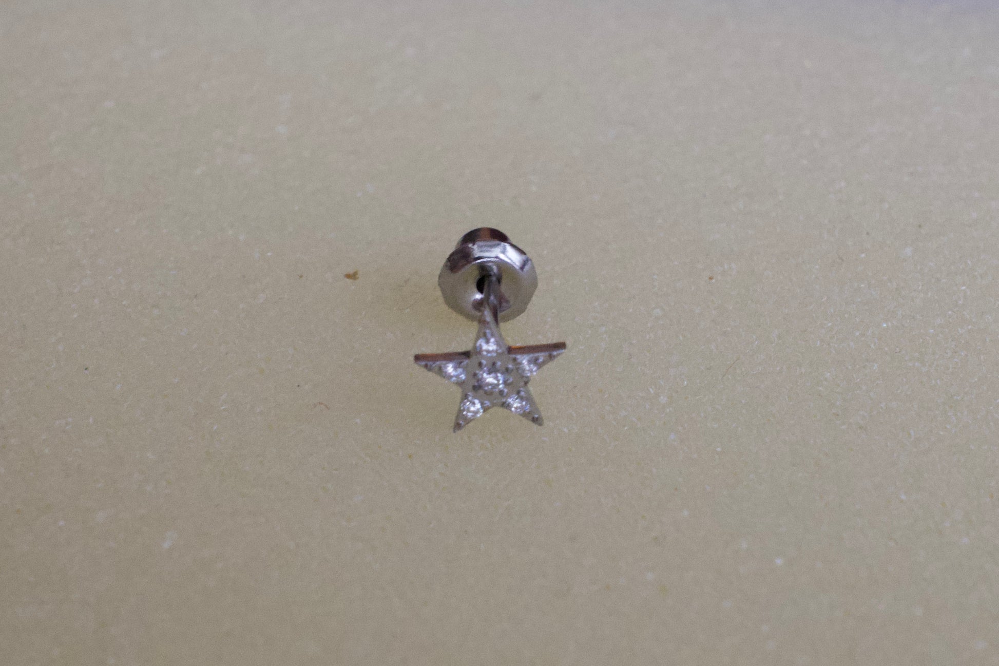 Set of star earrings with cubic zirconia crystals by Inverness. Hypoallergenic, surgical-grade stainless steel.